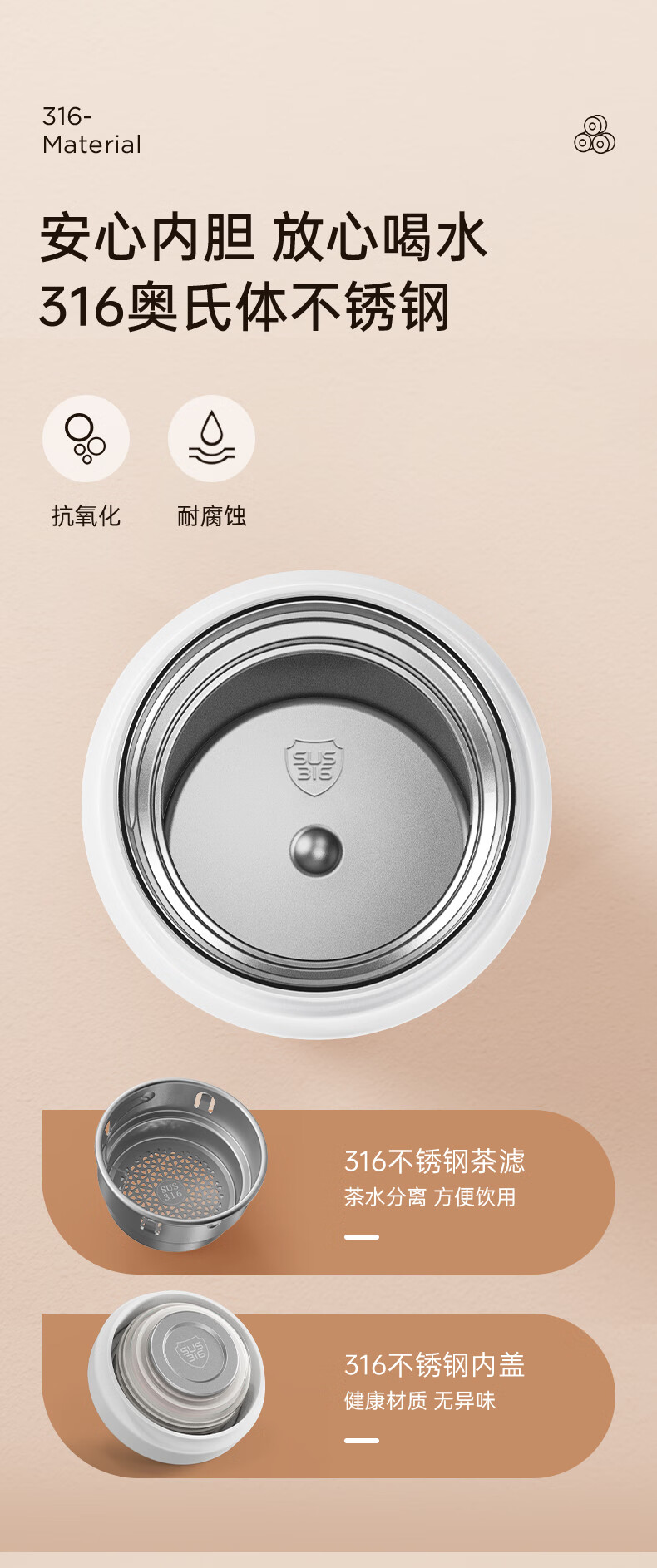 施密特(simita) 保温杯 男女士学生水杯 316不锈钢泡茶杯