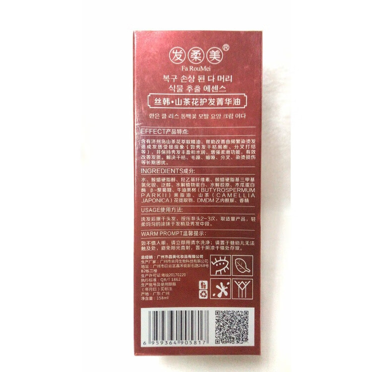 商品名称:发柔美发柔美丝韩山茶花护发菁华油香水精油免洗护发柔顺光泽补水保湿乳